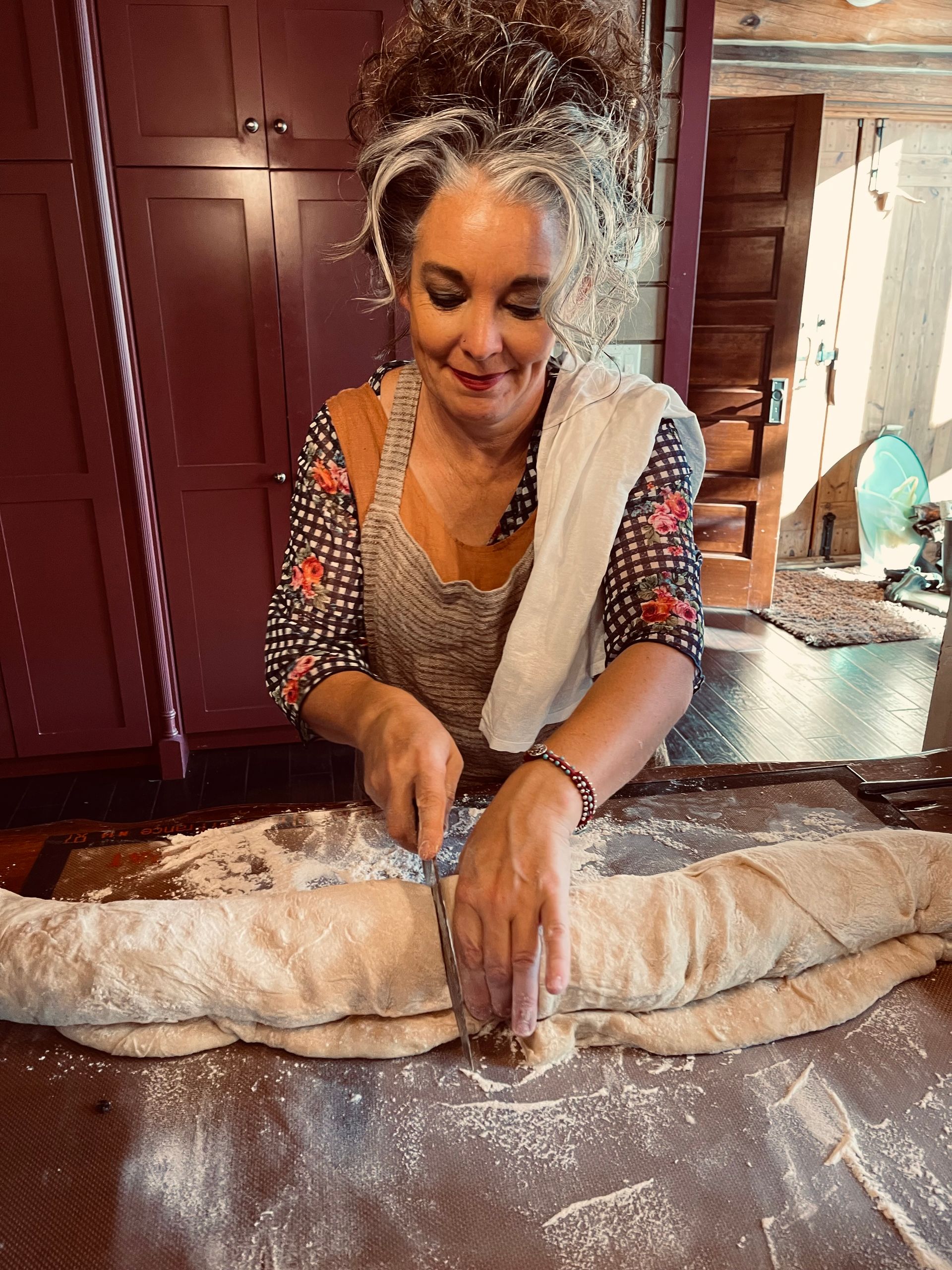 Nancy cooking with the grandchildren.